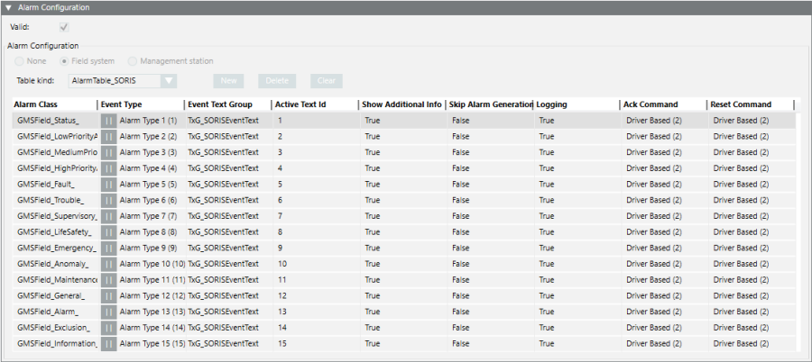 SORIS supports alarming through the use of categories, which are handled in the management station alarm table or in the adapter. There are two types of alarming—workstation-based, and driver-based. Workstation-based alarming is defined in the management station, while driver-based alarming is defined in the adapter.