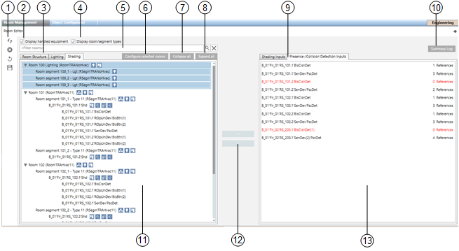 11 | Room information list Displays all rooms taken over in the room information list by the System Browser. To improve the overview, drag only the rooms for editing to this window. | ||