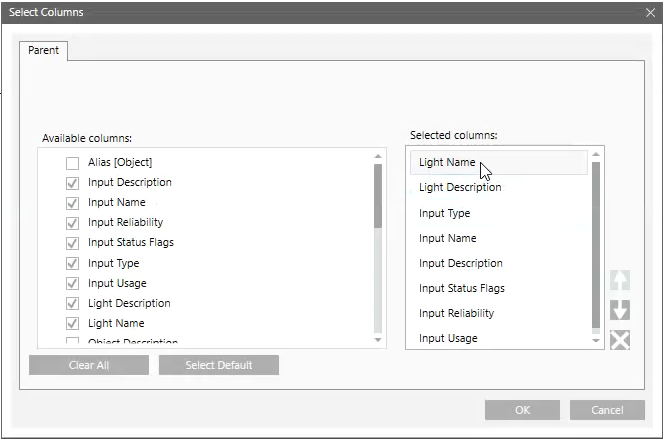 Right-click the report definition and select Select columns. a. Configure your report by deselecting columns or reorganizing or adding supplemental columns. b. Click OK.