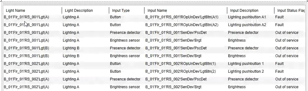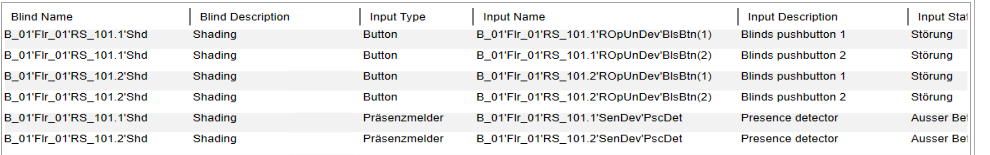 The report shows the assignments between group master and group members. The information is the same as in the Central Function Viewer.