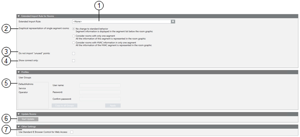 6 | Refresh rooms The hierarchy displayed in the System Browser must be manually refreshed if Desigo CC or the Engineering Tool changes segment assignments. It is normally required after reimporting the data. Only the rooms assigned to the same network are refreshed. The System Browser is automatically refreshed after saving using Room Management. | |