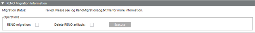 - Delete RENO artifacts: Deletes all the RENO artifacts. Automatically selected when the RENO migration checkbox is selected.