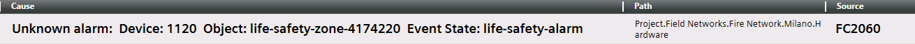 For certain subsystems an out-of-scan data point results in either no alarm at all being displayed or in an unknown alarm. In the latter case, you must identify the source of the alarm on the local fire panel.