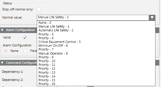 - Priority Array: Priority Array control is displayed in the Operation / Extended Operation tab. This control may only be used for the BACnet property Priority_Array.